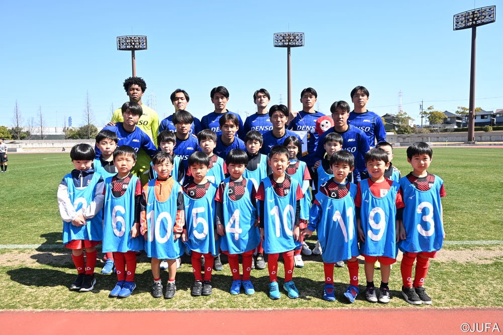 クラブパートナーである株式会社デンソー様のコーポレートキャラクター「デンまる」と写真撮影も行いました。