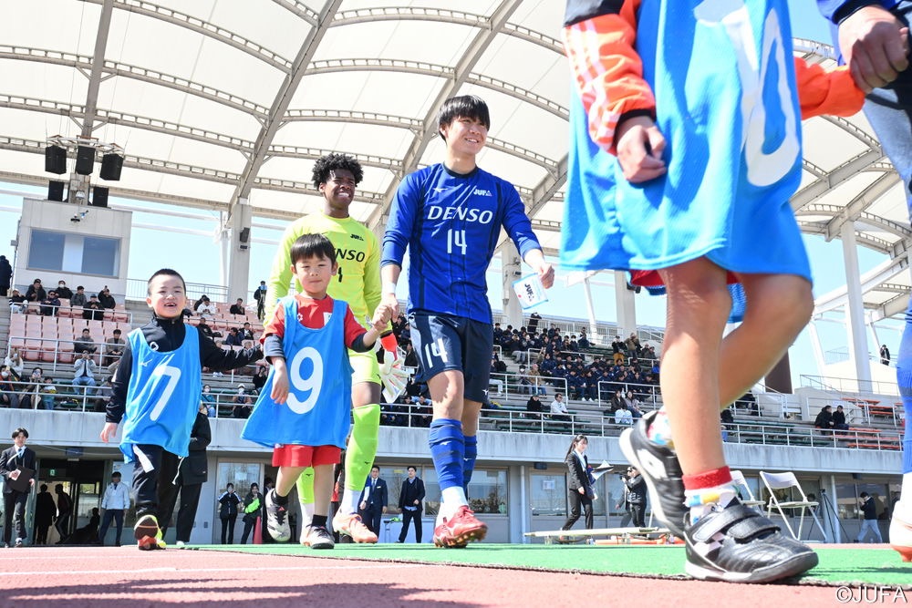 3月15日(日)に行われた『DENSO CUP SOCCER 第25回大学日韓(韓日)定期戦』にて、一般財団法人全日本大学サッカー連盟様よりご招待いただき、当クラブサッカースクール生がエスコートキッズを担当いたしました。